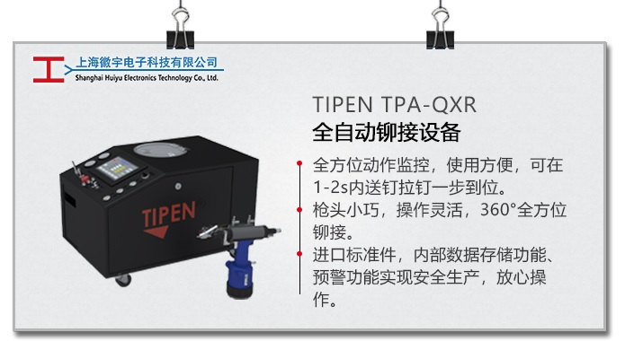 鉚釘槍、鉚螺母槍、全自動(dòng)鉚接設(shè)備、鉚釘、鉚螺母、防松墊圈、彈簧墊圈、超級(jí)螺母、彈簧平衡器、氣動(dòng)葫蘆、無鉚釘鉚接機(jī)、壓鉚機(jī)、液壓站、扭矩檢測(cè)儀、扭矩扳手、螺絲刀、膠槍、釘槍、電缸。