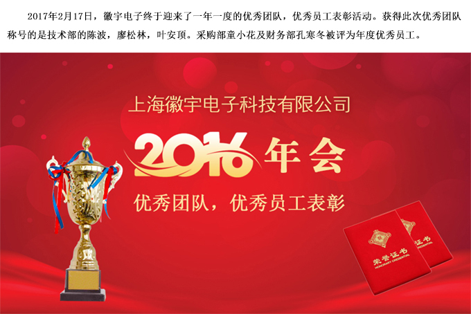 上;沼铍娮涌萍加邢薰2016年優(yōu)秀團(tuán)隊(duì),優(yōu)秀員工表彰